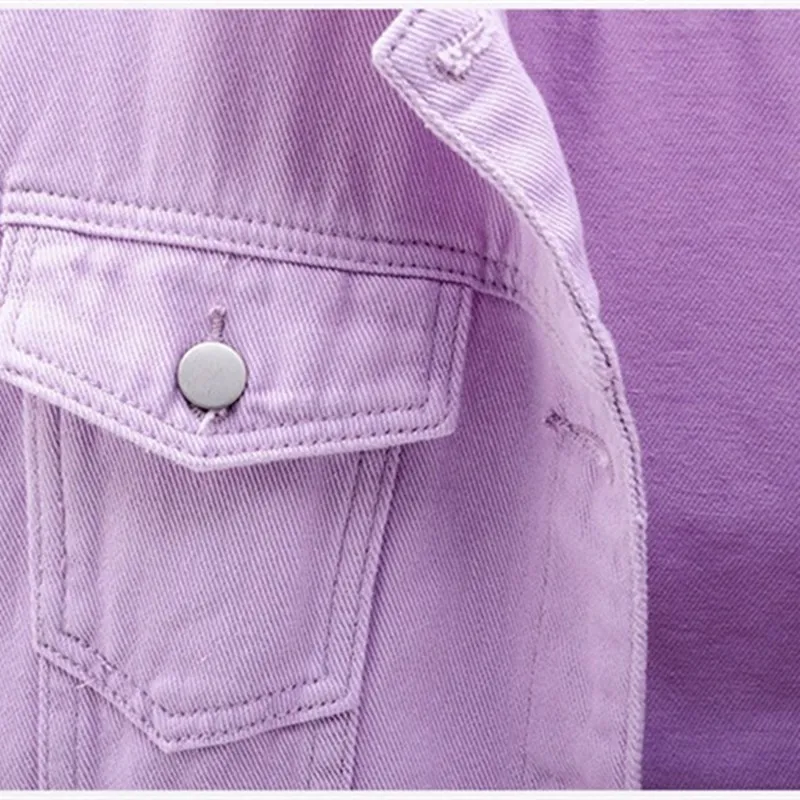 Be the first to review “Women’s plus size denim jacket spring autumn short coat pink jean jackets casual tops purple yellow white loose outerwear KW02”