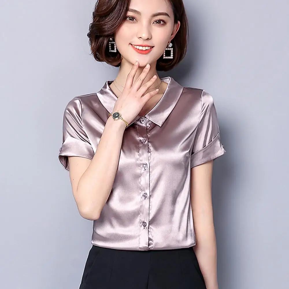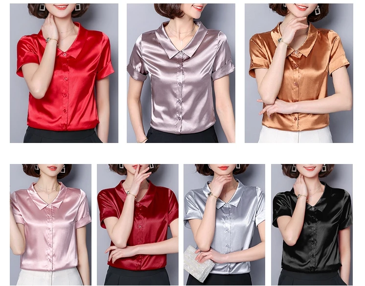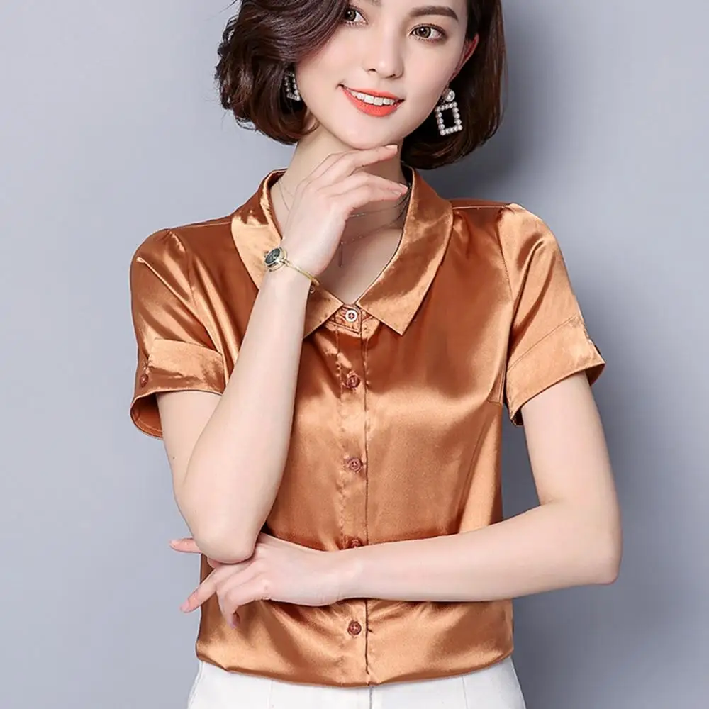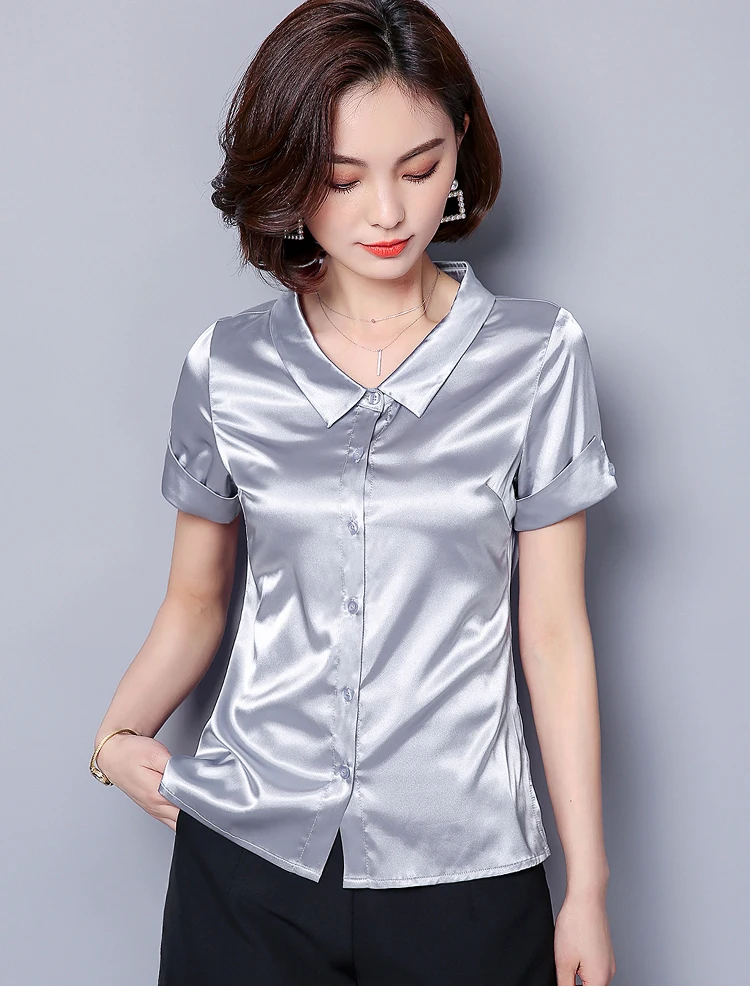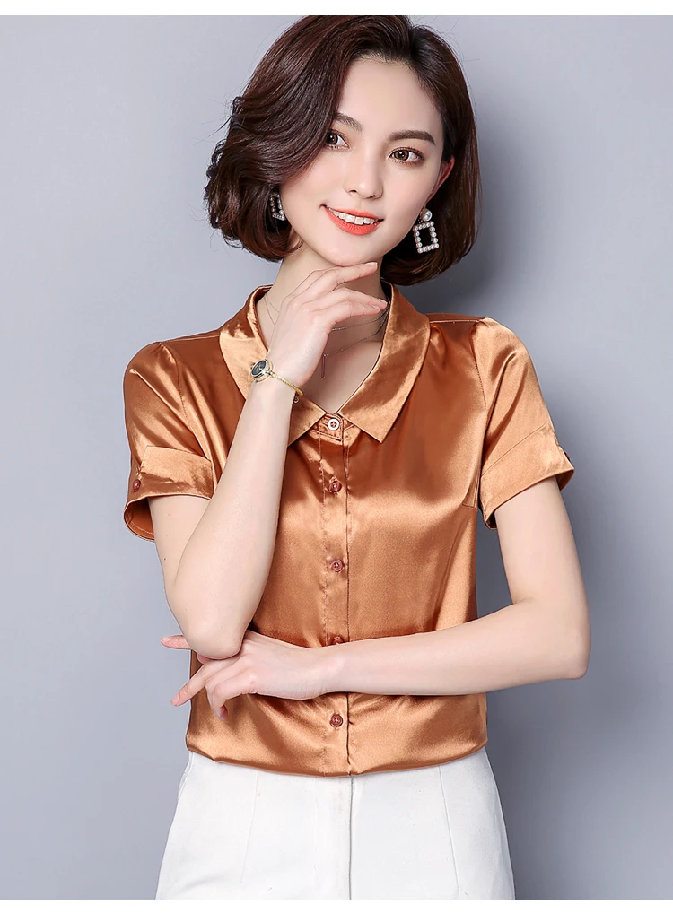 Women’s shirts blouse tops summer bright satin silk shirts women elegant spring autumn office ladies basic work shirts female