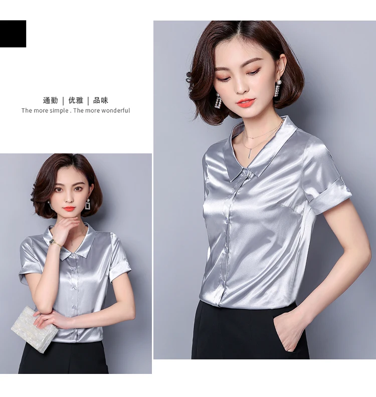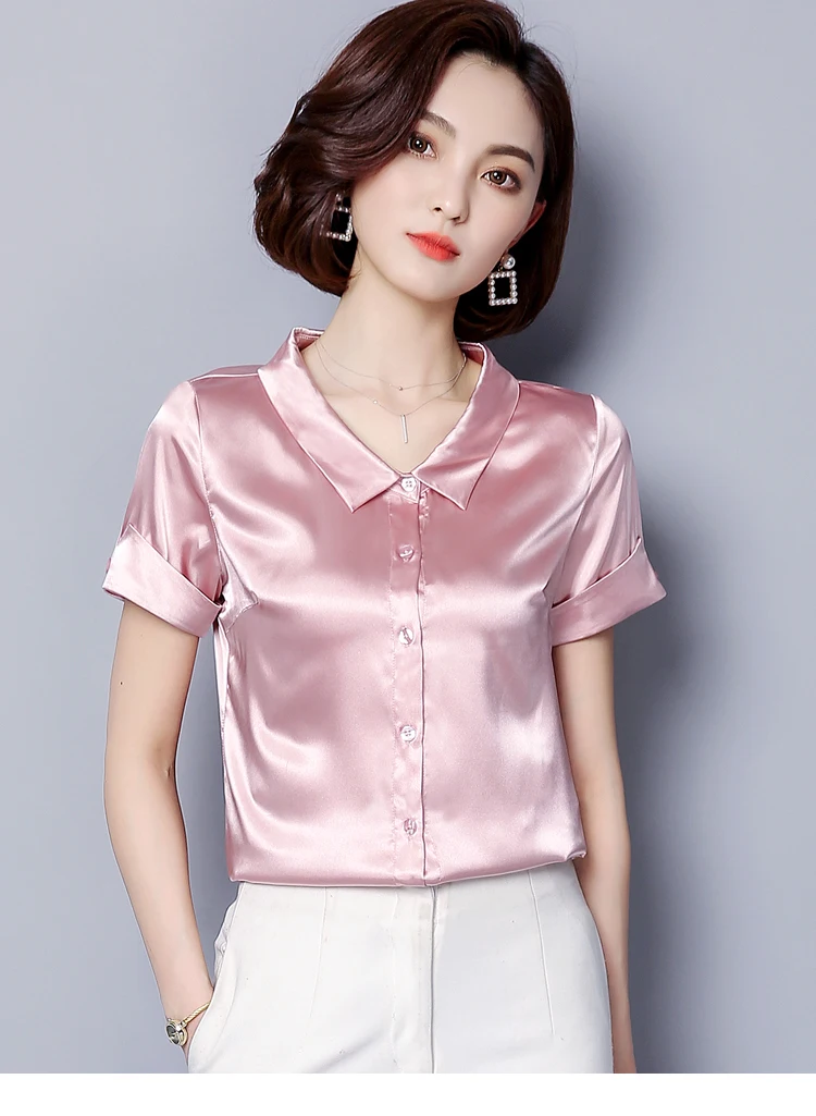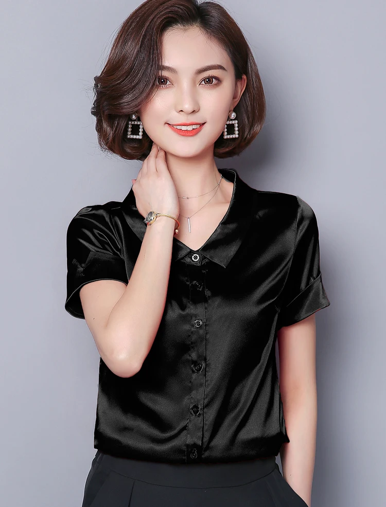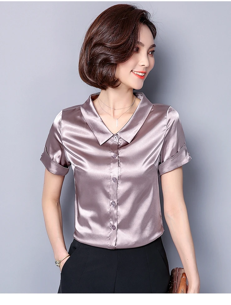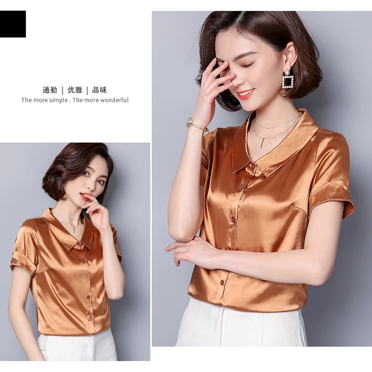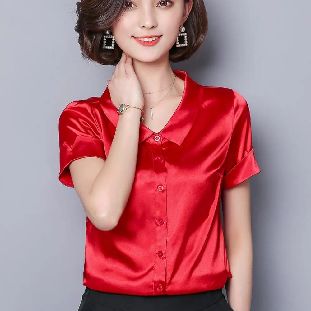 Women’s shirts blouse tops summer bright satin silk shirts women elegant spring autumn office ladies basic work shirts female