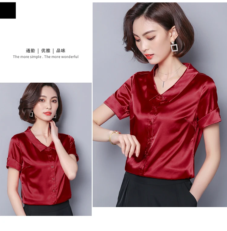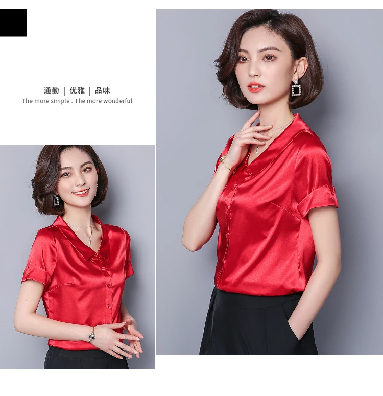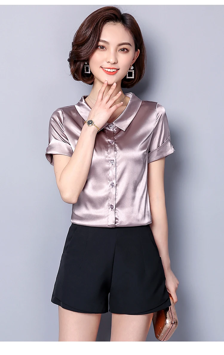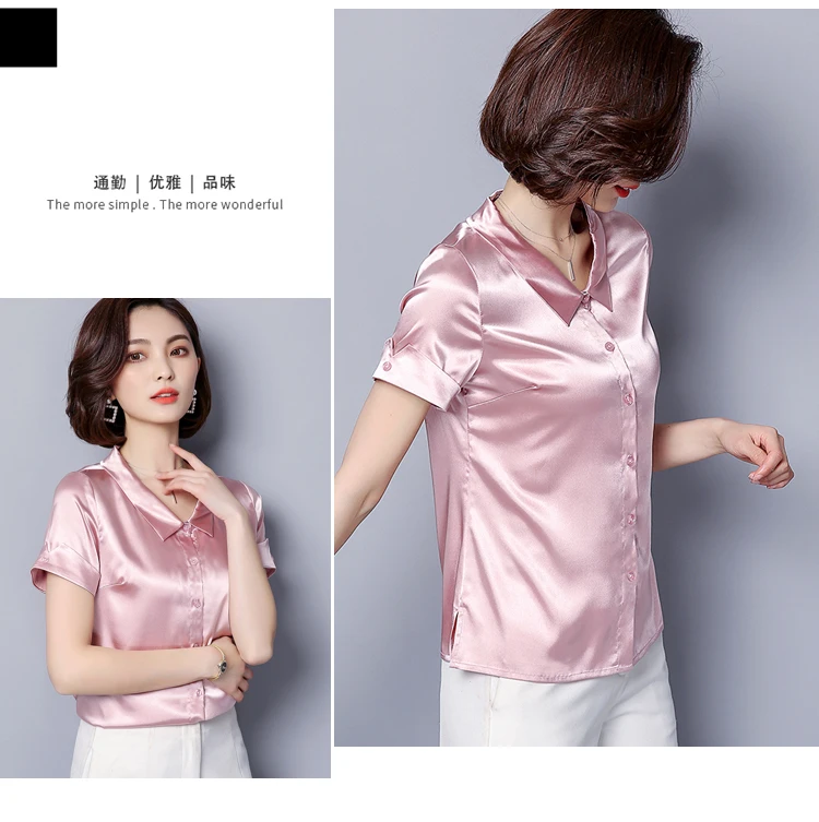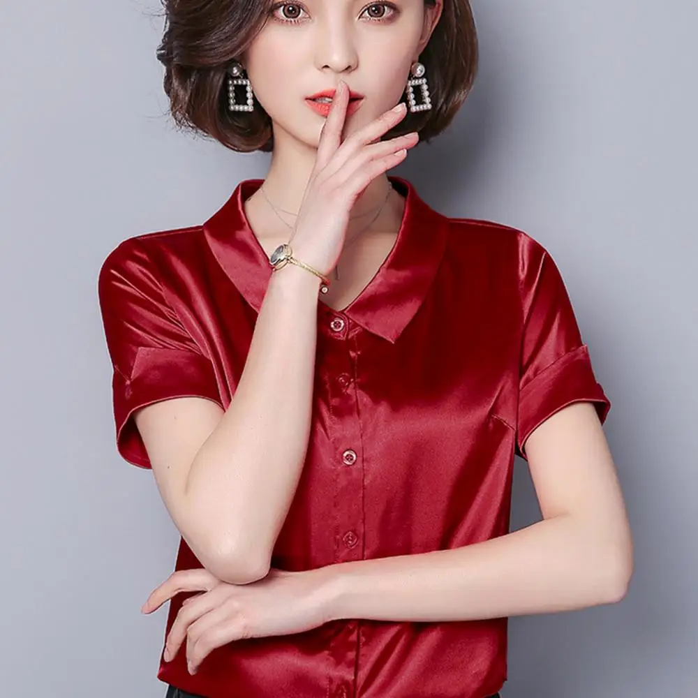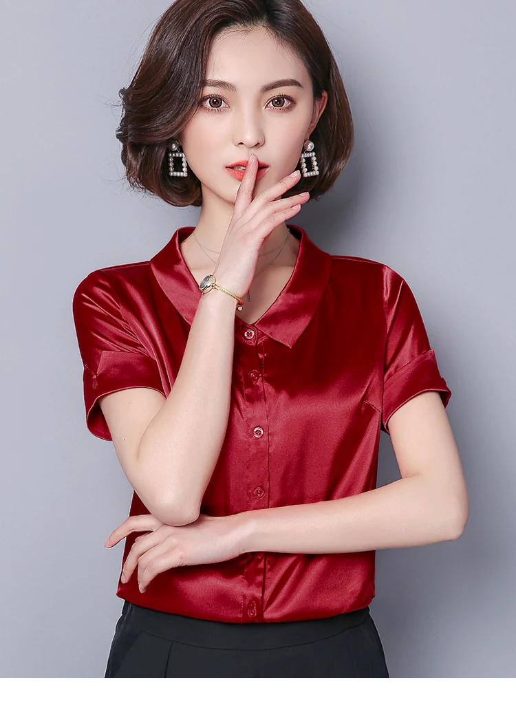 Women’s shirts blouse tops summer bright satin silk shirts women elegant spring autumn office ladies basic work shirts female