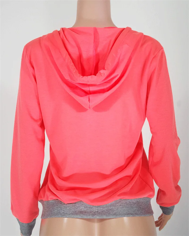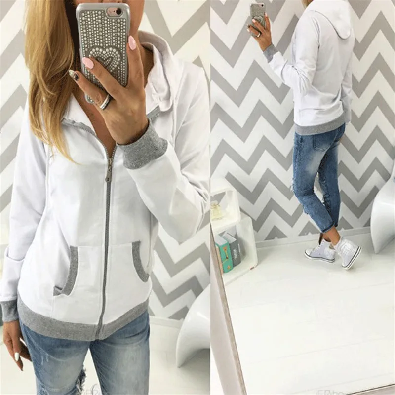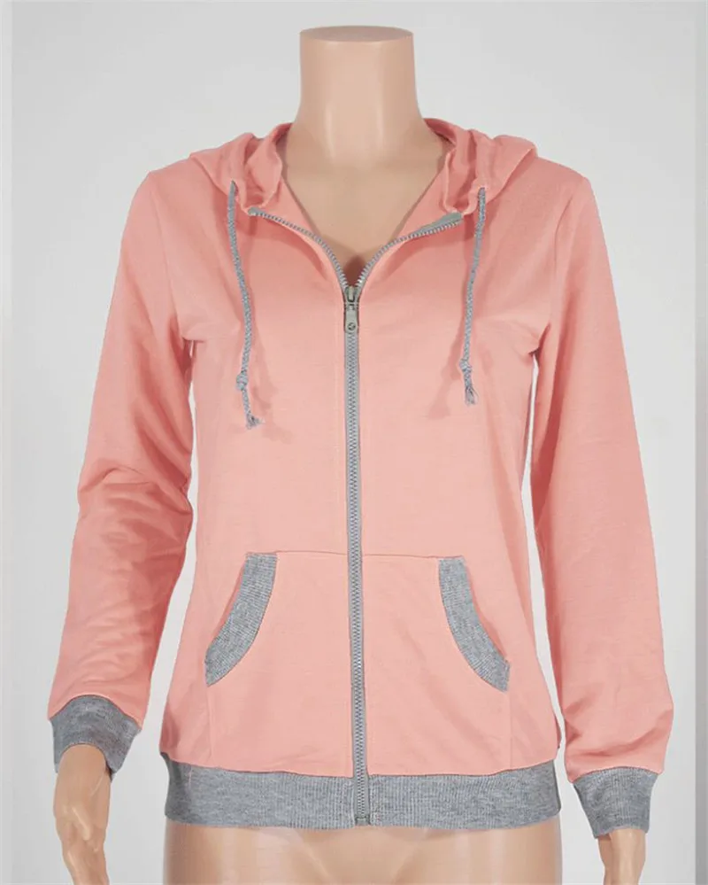 Women’s Spring Winter Hoodies Long Sleeve Patchwork Colors Sweatshirts Casual Pockets Zipper Hooded Ladies Outerwear Clothing