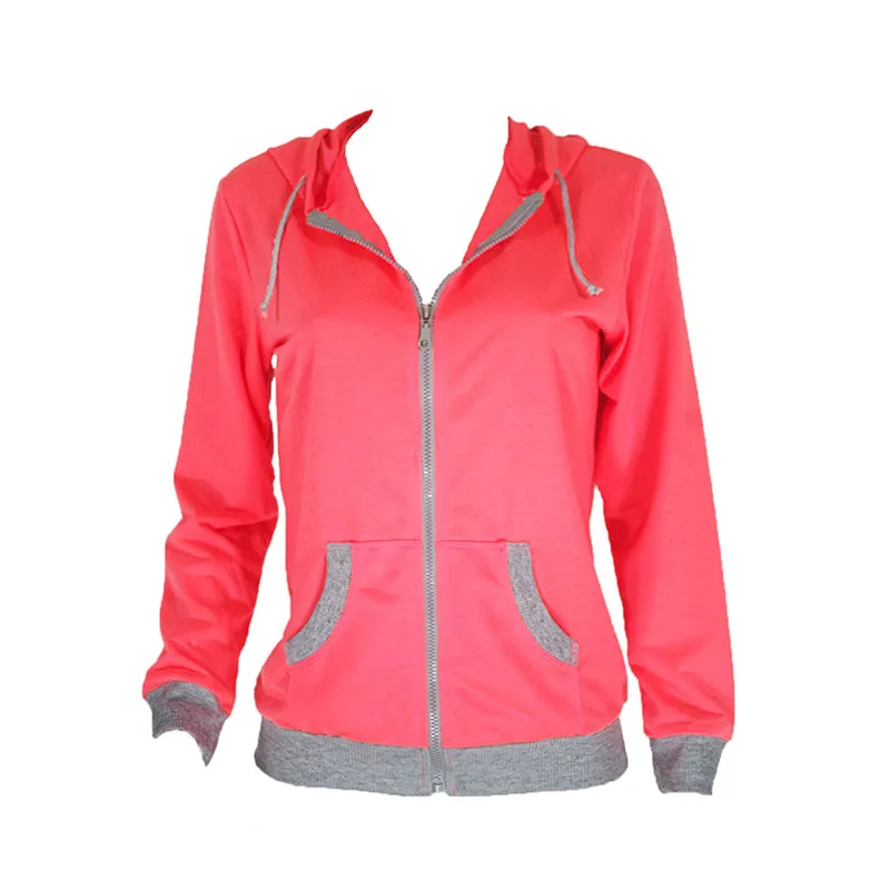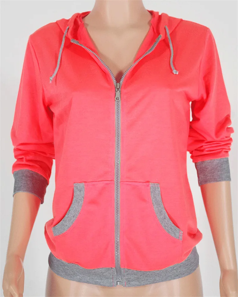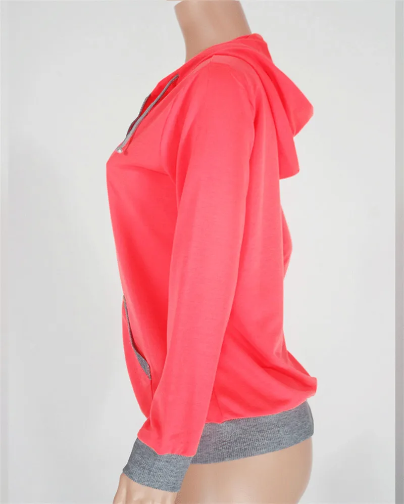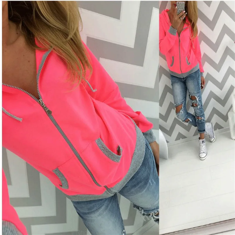 Women's Spring Winter Hoodies Long Sleeve Patchwork Colors Sweatshirts Casual Pockets Zipper Hooded Ladies Outerwear Clothing