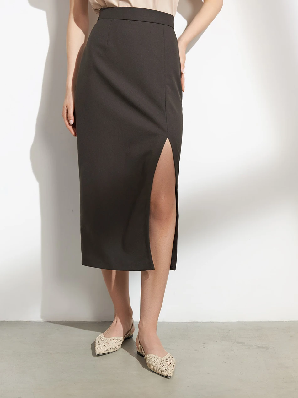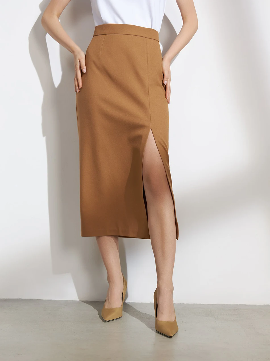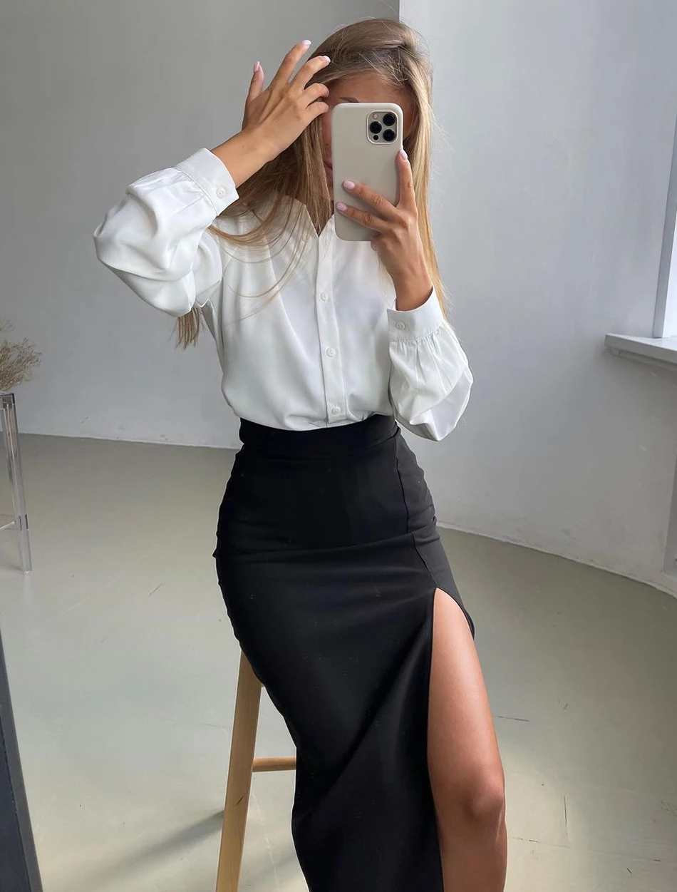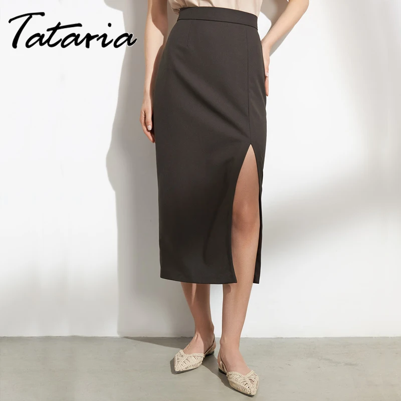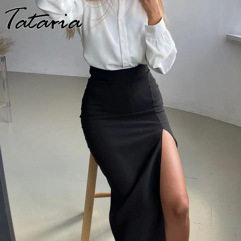Women’s Straight Wrap Skirts Autumn 2021 Long Skirt with Side Slit Female Elegant White Midi Tight Slim Office Skirt for Women