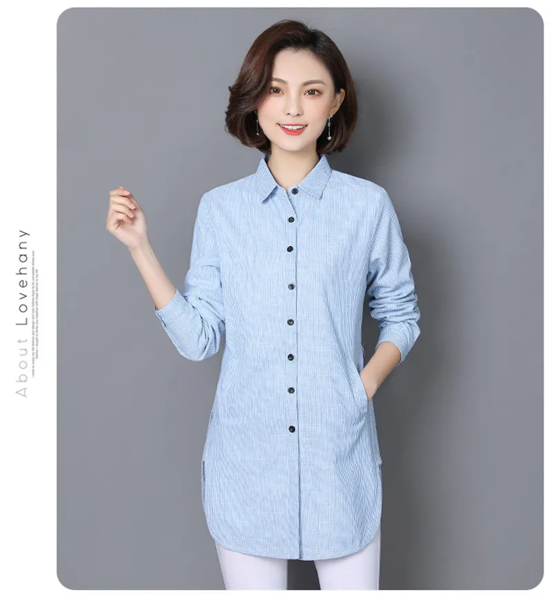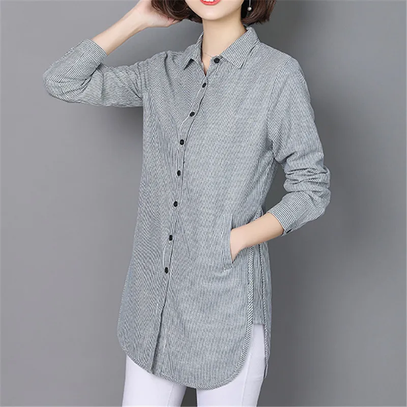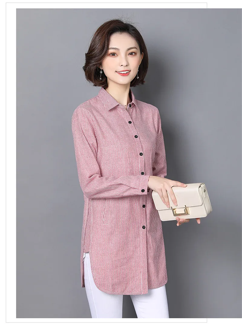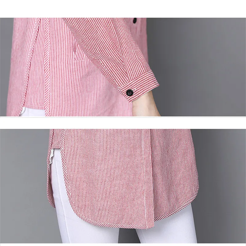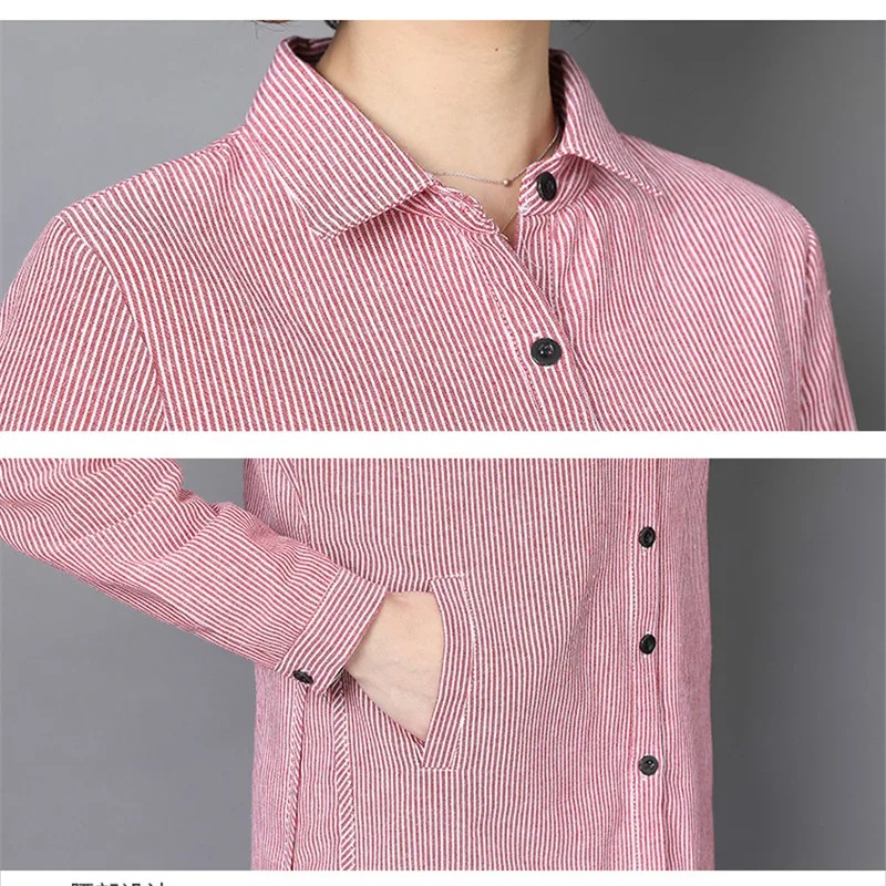 Womens Tops Striped Blouses Shirt Casual Loose Style Shirt Plus Size Long Sleeve Blusas Shirts Office Ladies Clothing Tops