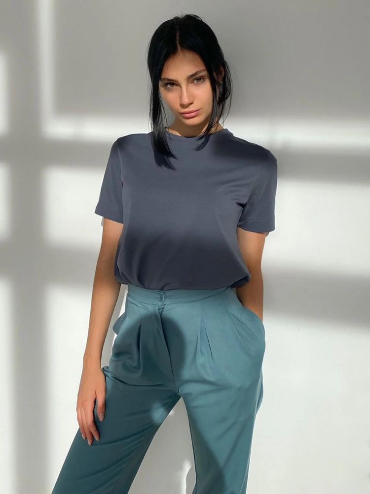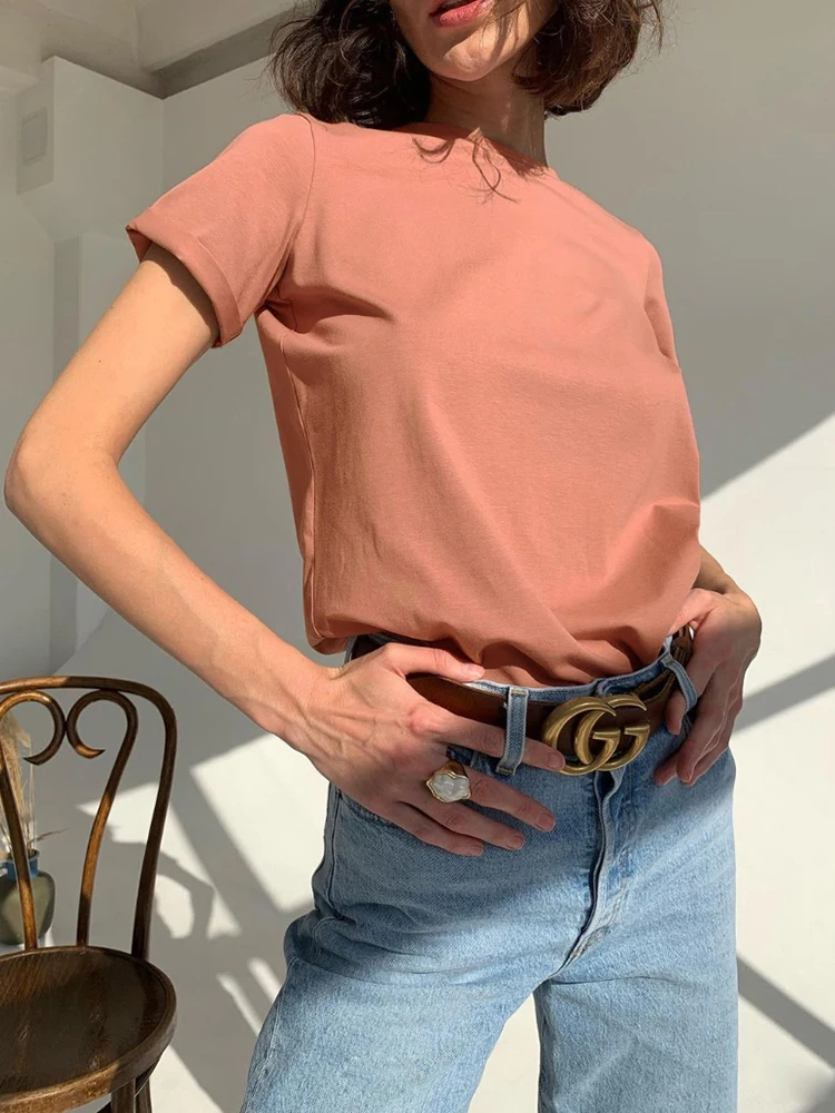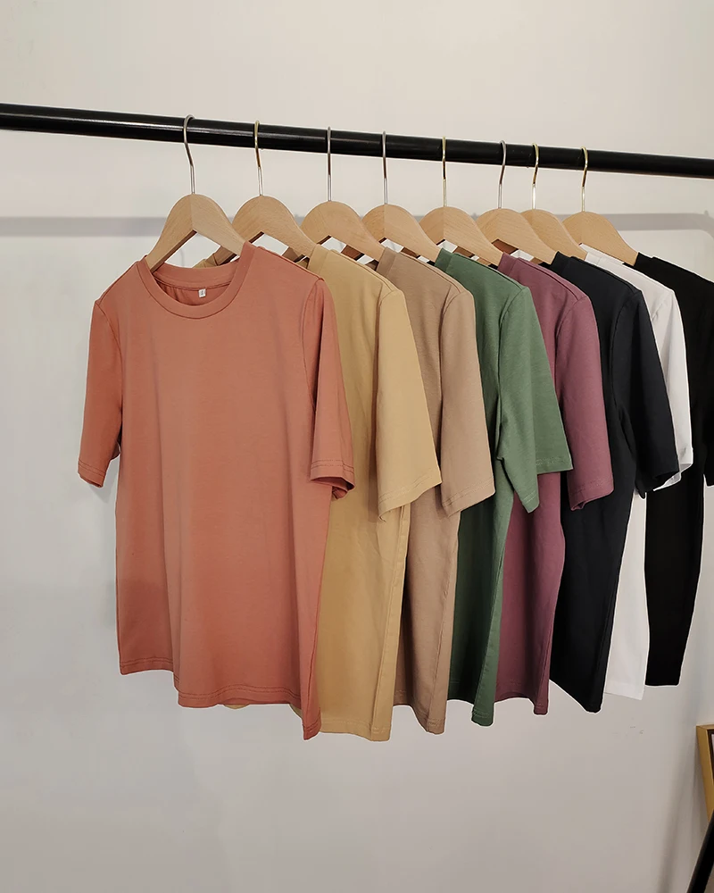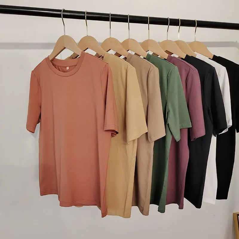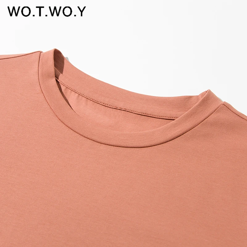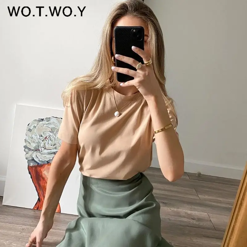 WOTWOY Casual Cotton Basic T-shirt Women Loose Short Sleeve Knitted Tee Shirts Female Solid Tees Ladies Summer Tops Harajuku New