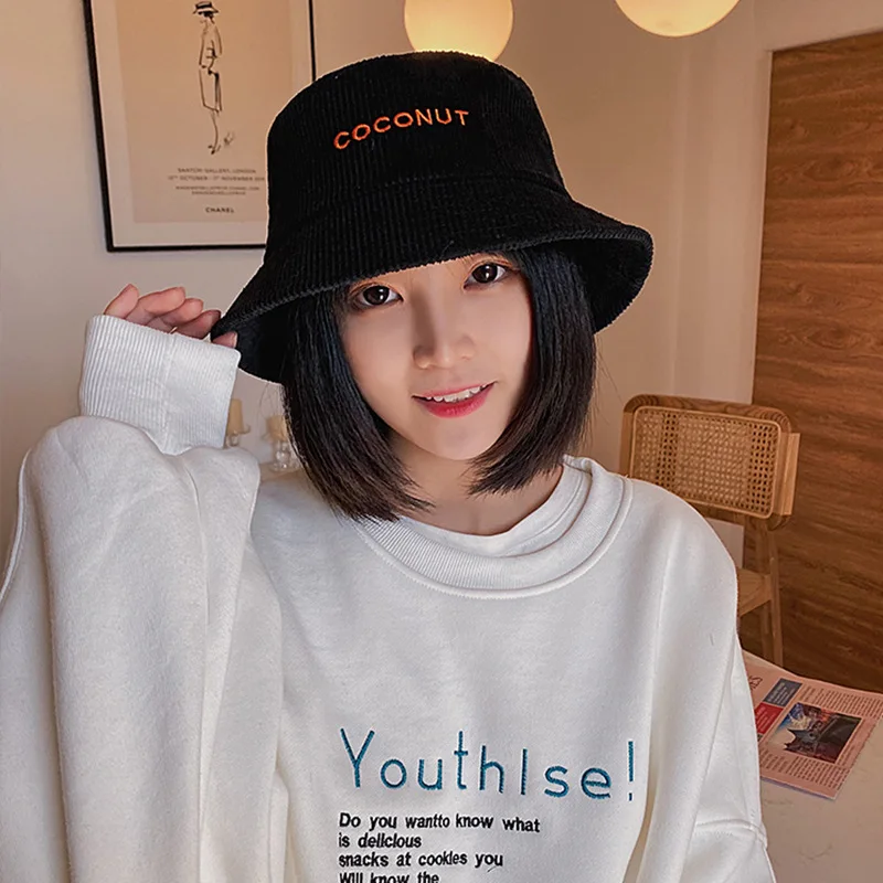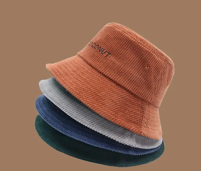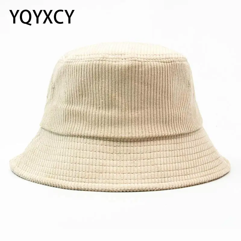 YQYXCY Bucket Hat Women Men Corduroy Fisherman Cap Retro Fashion Autumn Winter Hats Flat Bob Gorro Hip Hop K Pop Panama Korean