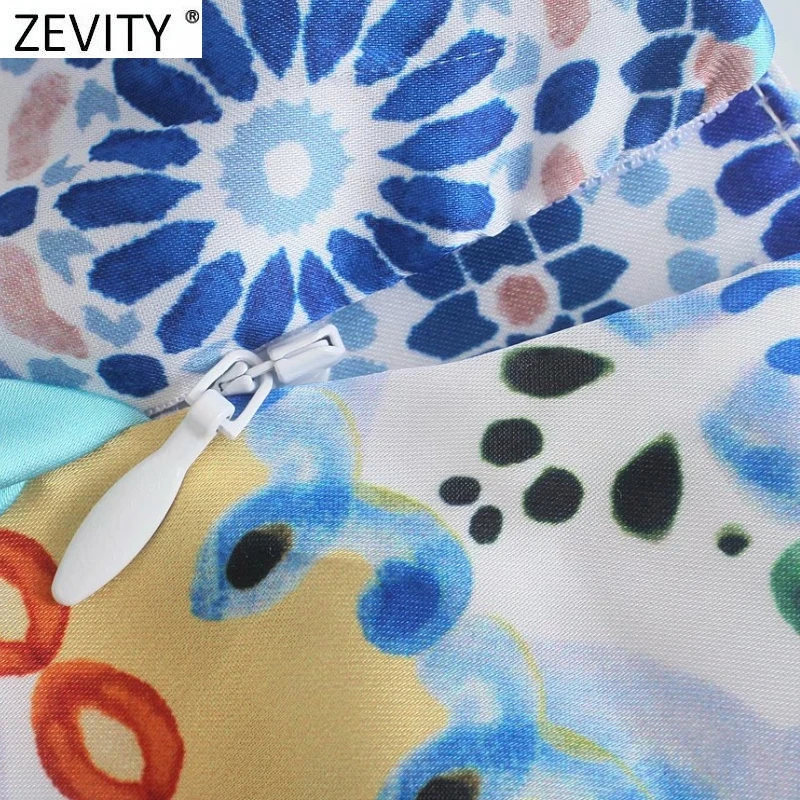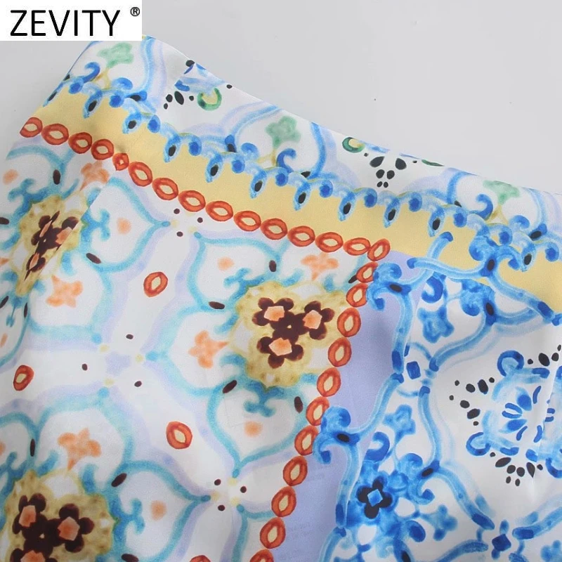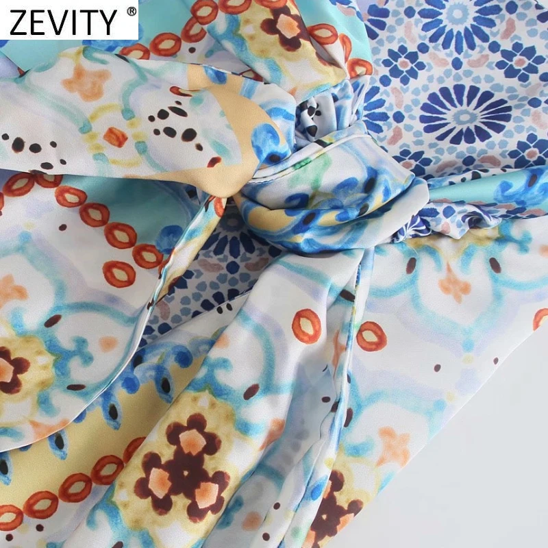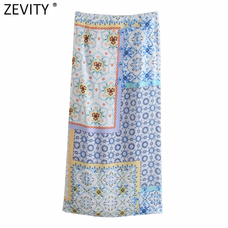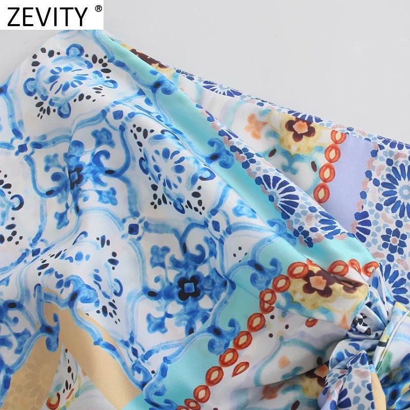 Zevity Women Vintage Cloth Patchwork Floral Print Knotted Sarong Skirt Faldas Mujer Female Side Zipper Chic Slim Vestidos QUN793