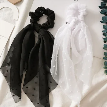 Fasihon Dot Ribbon Hair Scrunchies for Women Hair Ring Female Ponytail Chiffon Fabric Ribbon Hair Ties Korean Hair Accessories