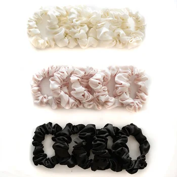 5Pcs Silk Scrunchies Set Hair Rope Ponytail Holder Hair Ring Solid Black White Pink Elastic Hair Circle Rubber Band Accessories