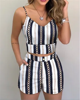 Summer Women Fashion 2-piece Outfit Set Sleeveless Print Top and Shorts Set for Ladies Women Party wear