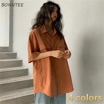 Blouses Women Japan Style Harajuku Simple Short Sleeve Summer Womens Chic Tops Retro All-match Pockets Trendy Girls Shirts New