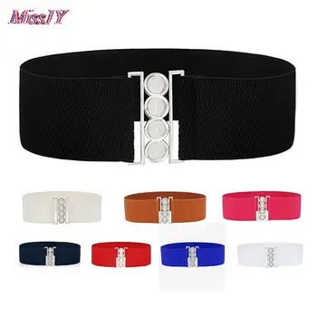 1Pc 11 Styles Women Stretch Elastic Wide Waist Belts Dress Waist Silver Metal Buckle Fabric Strap Female Apparel Accessories