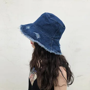 MAXSITI U New Vintage Bucket Hat hole denim fisherman’s Hat Women’s fringed Big Brim fashion casual basin hat