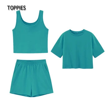 Toppies Summer Tracksuits Woman Three Piece Set Short T-shirts Sleeveless Tank Tops High Waist Shorts Casual Set