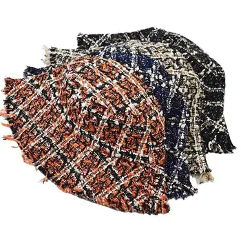 women 4 seasons plaid Bucket Hat Solid Colors folding street wear sun hat Beach UV Protection Round Top Sunscreen Fisherman Cap