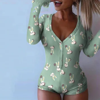 Rabbit V-neck Cute Long Sleeve Bodycon Bodysuit for Women 2020 Fall Winter Sexy Spandex Jumpsuits Ladies Lovely Romper Clothes