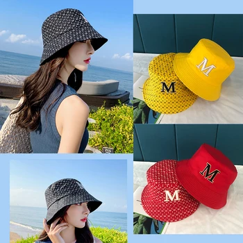 HT123 Men Women Letter Printed Bucket Hat Hip Hop Fisherman Panama Hats letter M Embroidery Cotton Outdoor Summer Casual Bucket