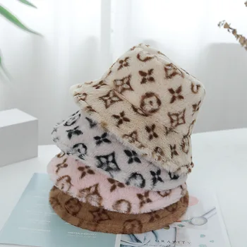 Winter Floral Faux Fur Fluffy Bucket Hats Women Outdoor Warm Sun Hat Soft Velvet Furly Fisherman Cap Lady Fashion Panama