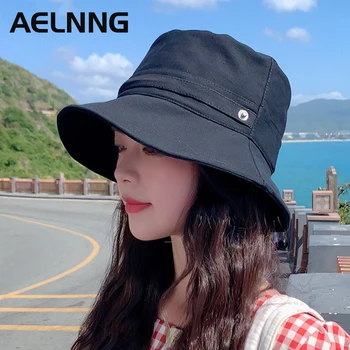 AELNNG Brand Summer Sun Protection Bucket Hats Women Panama Fold Beach Sunhat Fashion Casual Cotton Outdoor Travel Hat A8037