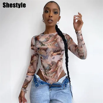 Shestyle Butterfly Angel Printed Bodysuits Women Bodycon Slim Sexy Round-neck 2020 New Arrivals Overalls Body Open Crotch Lady
