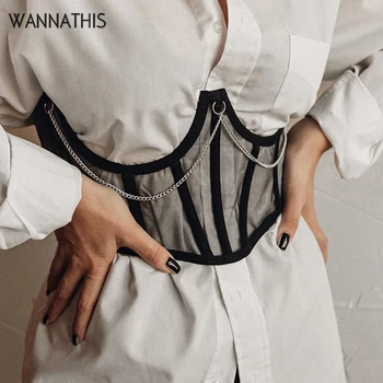 WannaThis Belts for Women Lace up Wide Belt Mesh Elegant Women Metal Chain Straps Female Stretchy Wide Belt Ladies Asymmetry