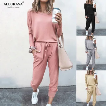 2020 top Spring Autumn Tracksuit Women 2 Piece Set Loose Comfortable Simple Style Solid Color Long Sleeve Casual Suit Clothes