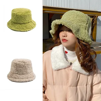 Autumn Winter Panama Bucket Hat Women Artificial Fur Warm Female Cap Faux Fur Hat Outdoor Sunscreen Sun Hat Lady Cap
