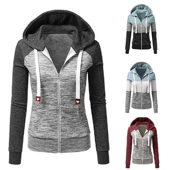 Women Casual Patchwork Drawstring Hoodies Autumn Winter Zipper Pocket Long Sleeve Sport Sweatshirts Female Harajuku Plus Coat