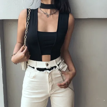 Fashion Sexy Hollow Women’s Jumpsuit Round Neck Black Slim Fit All-match Thin Rompers Summer 2020