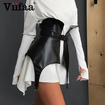 Viifaa Black PU Leather Belt Buckle Corset Women Spring 2021 Fashion Slim Streetwear Elegant Ladies Corsets