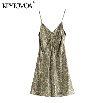 KPYTOMOA Women 2021 Chic Fashion With Bow Paisley Print Cozy Mini Dress Vintage V Neck Adjustable Straps Female Dresses Mujer