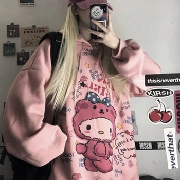 Kawaii Anime Winter Women Hoodie Cute Cartoon Long Sleeve Casual Hoodie Oversized Sweatshirt Harajuku Tops Fashion Pullover 2021