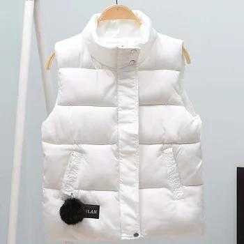 Winter Vest Women Short Sleeveless Vest Jacket Lightweight BodyWarmer Waistcoat Female White Gilets Windbreaker Slim Parkas Coat