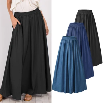 Fashion Denim Blue Skirts Women’s Casual Vestidos ZANZEA 2021 Female Elastic High Waist Solid SKirt Pleated Robe S-