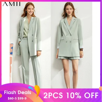 Amii Minimalism Spring Suit Female Offical Lady Blazer Women,Lace Vneck Tanks,High Waist Women’s pants Female Shorts 12060909
