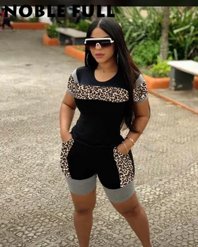 2020 New Style Suit Casual Leopard Splicing Two-Piece Suit European and American Fashion Women’s Clothing