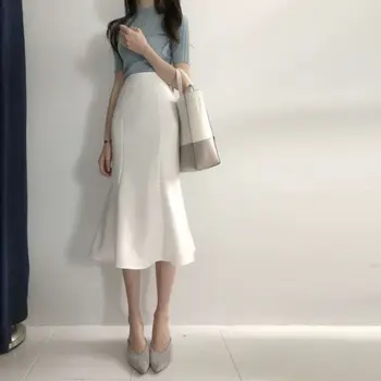 2021 Spring Summer Women Fashion Office Lady Ruffles Skirt Solid Color High Waist Fishtail Flouncing Knee Length Skirts M127