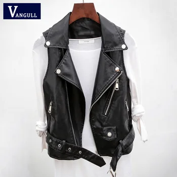 Vangull PU Leather Vest Waistcoat Solid Women Motorcycle Vest 2021 Spring Autumn New High Quality Sleeveless Zipper Vests Tops