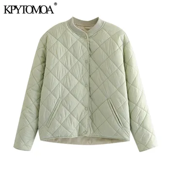 KPYTOMOA Women 2021 Fashion Single Breasted Loose Padded Jacket Coat Vintage Long Sleeve Pockets Female Outerwear Chic Tops