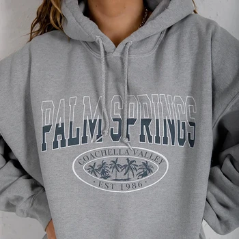 Letter Print Sweatshirt Vintage Women Hoodies Gray Cotton Warm Fleece Winter Pullovers 2021 Autumn New Casual Streetwear Girls