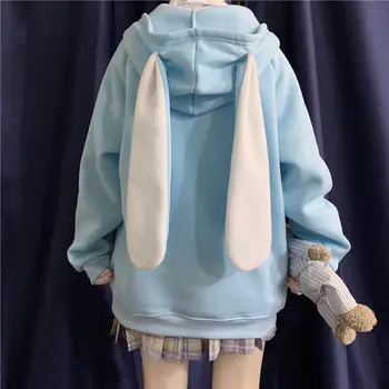 HOUZHOU Korean Style Women Hoodies Spring 2020 Fashion Kawaii Rabbit Ears Sweatshirt Long Sleeve Loose Embroidery Zip Up Hoodie