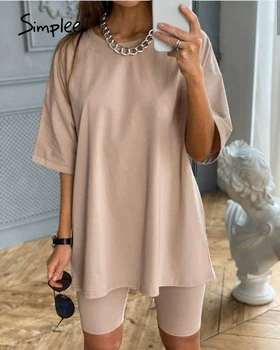 Simplee Casual solid women’s two piece suits with belt Home fashion bicycle sets Sports shorts tracksuit suit Spring summer 2020