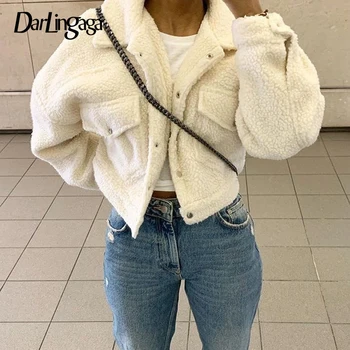 Darlingaga Fashion Lamb Wool Autumn Winter Coat Women Jacket Fleece Shaggy Warm Cropped Jackets Overcoat Single Breasted Outwear