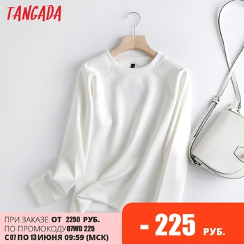 Tangada Women 2021 White Sweatshirts Oversize Long Sleeve O Neck Loose Pullovers Female Tops 6D90