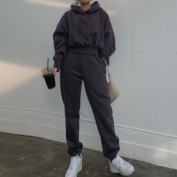 Hoodies Suit Winter Spring Solid Casual Tracksuit Women Velvet 2 Pieces Set Sports Sweatshirts Pullover Home Sweatpants Outfits