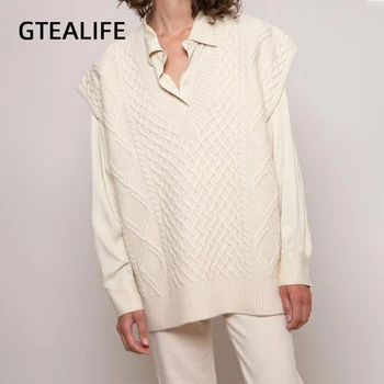 Gtealife Women Vest Simple All-match Style V-neck Knitted Sweater Leisure Student Sleeveless Female Vintage sweater waistcoat