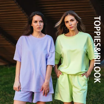 Toppies Summer Tracksuits Womens Two Peices Set Leisure Outfits Cotton Oversized T-shirts High Waist Shorts Candy Color Clothing