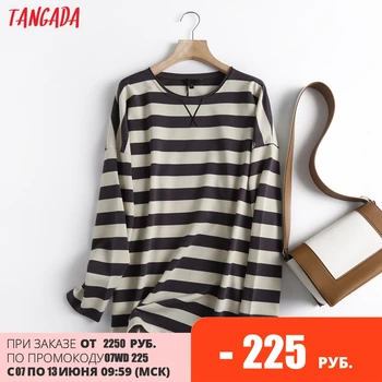 Tangada Women High Quality Striped Print Sweatshirts Oversize Long Sleeve O Neck Loose Pullovers Female Tops 6D42