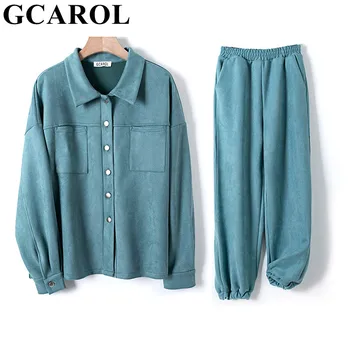 GCAROL Women tracksuits Velvet Jacket And Pants Drop Shoulder Oversized Coat Single-Breasted Elastic Waist Overalls Cargo M,L