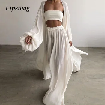 Spring Soft Women Three Piece Set Fashion Wrap Cardigan Tops And High Waist Pants Suit Female Casual Simple Tracksuits Homewear